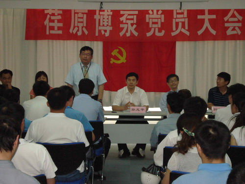本次黨員大會由黨總支副書記姜作棟同志主持,他首先介紹了黨組織機(jī)構(gòu)的組成:張玉琴同志任黨總支書記,姜作棟同志任黨總支副書記,李正民同志、劉擁民同志、王興春同志分別任統(tǒng)戰(zhàn)委員、組織紀(jì)檢委員、文體宣傳委員。荏原博泵黨總支下設(shè)管理、生產(chǎn)、質(zhì)量和業(yè)務(wù)技術(shù)四個黨支部,管理黨支部書記由邱建剛同志擔(dān)任,生產(chǎn)黨支部書記由宋遵民同志擔(dān)任,質(zhì)量黨支部書記由郝圣同志擔(dān)任,業(yè)務(wù)技術(shù)黨支部書記由梁文運(yùn)同志擔(dān)任。各黨支部通過民主選舉選出了支部委員。在會上,黨總支書記張玉琴同志向全體黨員提出要求,一是加強(qiáng)學(xué)習(xí),提高素質(zhì);二是增強(qiáng)黨性,努力工作;三是加強(qiáng)領(lǐng)導(dǎo),發(fā)揮作用。著重強(qiáng)調(diào)了全體黨員不僅要有較高的政治素質(zhì),更要有很強(qiáng)的業(yè)務(wù)能力和技術(shù)水平。要一如既往的發(fā)揮黨員的先鋒模范作用,以企業(yè)經(jīng)濟(jì)發(fā)展為中心任務(wù),身先士卒,帶頭努力干好工作,在營造團(tuán)結(jié)和諧的工作氛圍中發(fā)揮作用。公司總經(jīng)理孫龍平同志在黨員大會上代表行政領(lǐng)導(dǎo)班子作了重要發(fā)言,指出目前公司正處在打基礎(chǔ)的關(guān)鍵時期,邊建設(shè)、邊生產(chǎn)、邊供貨、邊發(fā)展。黨組織要充分發(fā)揮政治核心作用,領(lǐng)導(dǎo)工會、共青團(tuán)等群眾組織,團(tuán)結(jié)凝聚廣大員工,貫徹黨的方針政策,促進(jìn)企業(yè)健康發(fā)展。