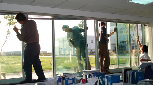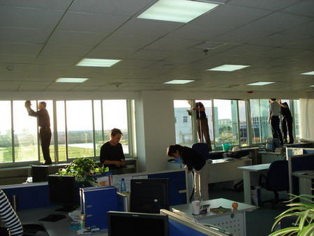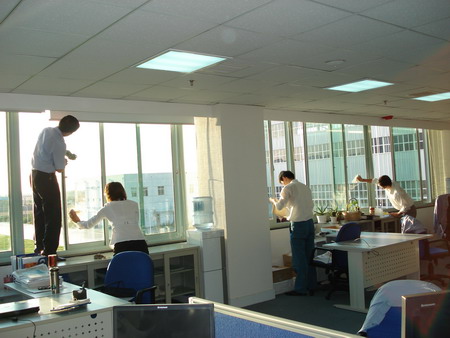 業(yè)務(wù)技術(shù)黨支部共32人參加勞動,支部書記梁文運(yùn)與支委們首先對負(fù)責(zé)清理的二樓、四樓場所及會議室的窗戶和地面進(jìn)行了詳細(xì)分工,使大家在有限的時間內(nèi)有條不紊的進(jìn)行。特別是二樓只有13人參加勞動,衛(wèi)生清理工作量比較大,但大家都沒有任何怨言。在勞動中,鄭素紅、房凝、徐寶紅、牛愛香四位女同志連續(xù)工作一個半小時打掃了二樓的所有辦公室和會議室的地面。李正民副總和李同華副總率先帶頭擦起了窗戶,在擦完窗戶后大家又把所有的窗臺和地面的衛(wèi)生死角清理了一遍。