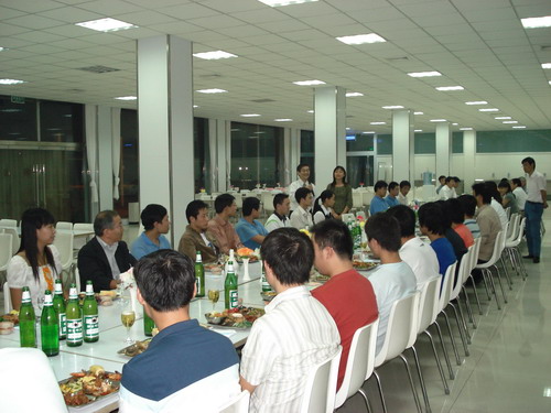 晚宴在輕快的音樂聲中舉行,總經(jīng)理孫龍平因公務無法前來,專門打電話表達了對員工的節(jié)日問候。公司董事長井上先生、常務副總鈴木先生先后致辭,表達了對員工節(jié)日的祝賀,同時談到了八月十五這一天,在日本也有全家人賞月的傳統(tǒng),故鄉(xiāng)的明月是所有游子魂牽夢繞的情。自助式晚宴進行得自由而輕松,員工之間頻頻舉杯,共敘友誼,并無多愁善感;人力資源部姜部長帶頭向員工一一祝酒,對員工的鼓勵溢于言表,整個餐廳觥籌交錯,其樂融融。