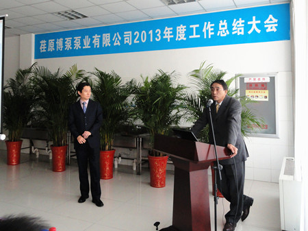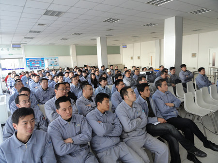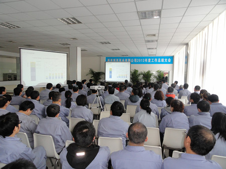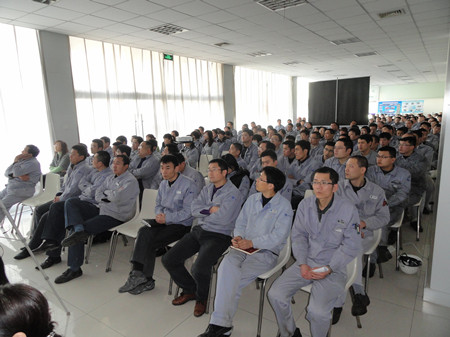 王總在講話中用詳實(shí)的數(shù)字,明晰的圖表,做了細(xì)致地分析和總結(jié)。對2012年之前的工作做了主觀和客觀的原因分析。在2013年的工作總結(jié)中,王總用成績和不足來概括:在2013的工作中,營業(yè)工作取得比較突出的成績,取得了訂單創(chuàng)新高;百萬機(jī)組項(xiàng)目100%容量訂單的簽訂等亮點(diǎn),特別可喜的是,在EPC印尼項(xiàng)目中,鍋爐給水泵、循環(huán)水泵、凝結(jié)水泵一次性簽單,這在公司歷史上乃至行業(yè)中都是很少見的。在生產(chǎn)方面:發(fā)貨臺數(shù)創(chuàng)公司歷史之最;車間5S管理取得良好進(jìn)展;產(chǎn)品不合格率得到有效控制。在其他方面:公司采購引入比價(jià)采購環(huán)節(jié),降低采購成本;C型泵的改善方面,提高采購批量,降低采購價(jià)格,滿足生產(chǎn)各環(huán)節(jié)的需要。不足之處:營業(yè)方面行業(yè)訂單結(jié)構(gòu)不平衡;生產(chǎn)環(huán)節(jié)中生產(chǎn)秩序的保證、外購件的合格率以及設(shè)計(jì)出圖的時(shí)間有待改善;ERP環(huán)節(jié)錄入數(shù)據(jù)的及時(shí)性、準(zhǔn)確性方面還有待提高等等。
