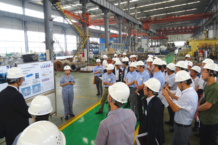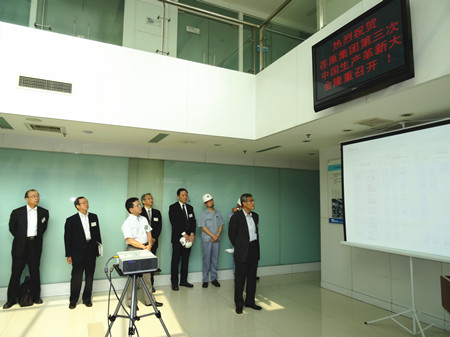 這次生產(chǎn)革新大會的目的是加速推進(jìn)荏原集團內(nèi)部各工廠的生產(chǎn)革新活動的開展,目標(biāo)是生產(chǎn)周期減半、庫存減半、最大限度地提高生產(chǎn)效率,降低成本,增強企業(yè)競爭力。通過生產(chǎn)革新活動,達(dá)到從現(xiàn)場改善提升到管理系統(tǒng)改善、人的改善的目標(biāo),使“產(chǎn)品制作”流程優(yōu)化。在這次大會上,公司總經(jīng)理王正軍向與會代表介紹了EMZ的經(jīng)營發(fā)展?fàn)顩r,并帶領(lǐng)與會人員參觀工廠,詳細(xì)介紹了生產(chǎn)革新的進(jìn)展情況。